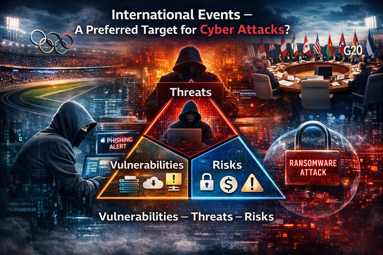 אולימפיאדות, מונדיאל, פסגות מדיניות ותערוכות טכנולוגיה מושכות מיליוני משתתפים וצופים בעלי עניין בנושא – במקביל לאירוע עצמו האירוע מושך אליו גם גורמי תקיפה מכל העולם. אירועים מסוג זה הופכים ל”מטרה הפוגשת סביבה נוחה” (Target Rich Environment): עומס דיגיטלי, מערכות מחשוב, קהל גלובלי וערך גבוהה לכל פגיעה. כדי להבין זאת לעומק, יש לבחון את המשולש: חולשה איום וסיכון.
